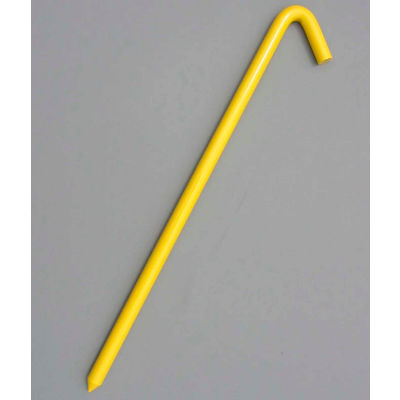 - A heavy duty steel hook stake with a baked on safety yellow enamel finish. 18" long with a 5/8" diameter shank. Great for staking down bouncers and inflatables.