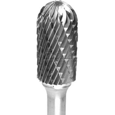 Grobet cylinder radius end carbide burr 32.61913, double cut, 1/4" shank dia, 2-3/4" oal high quality carbide burrs. Double cut (adc) is basically a standard cut tool, with cuts made on the left hand spiral. The design produces a finer finish on material and reduces the size of the chips and slivers.