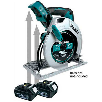 - Makita-built motor delivers 4,800 rpm for fast cutting and ripping two 18v lxt® lithium-ion batteries deliver the power and performance of a corded saw" without leaving the 18v lxt® platform two 18v lxt® lithium-ion batteries deliver up to 2.5x more cuts per charge"" reinforced magnesium base for durability weighs only 10.1 lbs. With batteries (batteries not included) for operator comfort large cutting capacity (2-5/8" at 90#176;) and bevel capacity (0#176;- 50#176;) with a positive stop at 45#176; rubberized soft grip handles for increased comfort large rubberized levers for quick and easy depth and bevel adjustments on-board blade wrench for convenience flat motor housing design for stability when changing the blade built-in dust blower cleans the line of cut for operator accuracy electric brake for maximum productivity l.E.D. Battery and temperature indicators monitor battery charge status and temperature ideal for framers, builders, roofers, forming, and more equipped with star protection computer controls#8482; to protect against overloading, over-discharging and over-heating rapid optimum charger communicates with the battery's built-in chip throughout the charging process to optimize battery life by actively controlling current, voltage and temperature (battery and charger sold separately) rapid optimum charger has a built-in fan to cool the battery for faster, more efficient charging (battery and charger sold separately) makita® technology delivers category-leading charge time so the battery spends more time working and less time sitting on the charger (battery and charger sold separately) compatible with makita® 18v lithium-ion batteries with a star symbol (battery sold separately) "compared to makita® 5007 series ""compared to makita