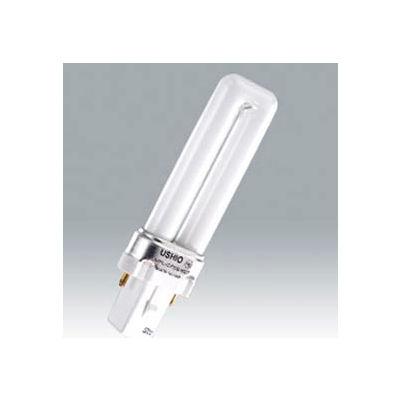Cf5s/827, single tube, t4s, 5 watt, 35volt, 10000 hour rated bulb with g23 base. Ushio's compact fluorescent lamps provide all the benefits of linear fluorescent lamps in a compact size. These lamps are highly efficient at 67 lumens per watt and 10,000 hours average life.