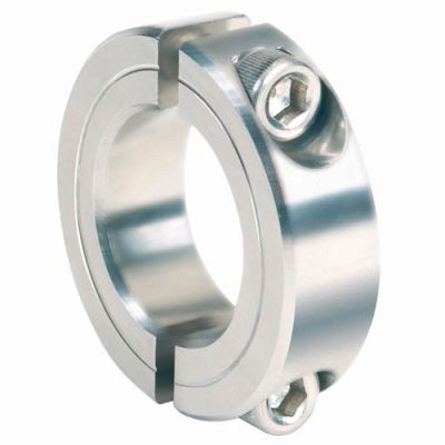 Corrosion resistant two-piece clamping collar cr2c-series, climax metal, 1/2" bore, 1-1/8" outside diameter. T316 stainless steel two-piece clamping collar. Design fully engages the shaft without marring.