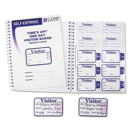 Keep track of visitors and manage traffic in your facility with one convenient book. Guests sign registry book to get their one-day badge and provide a written record of visiting your facility. Expired badges reveal a highly visible color indicator that can be seen from up to 50 ft away.