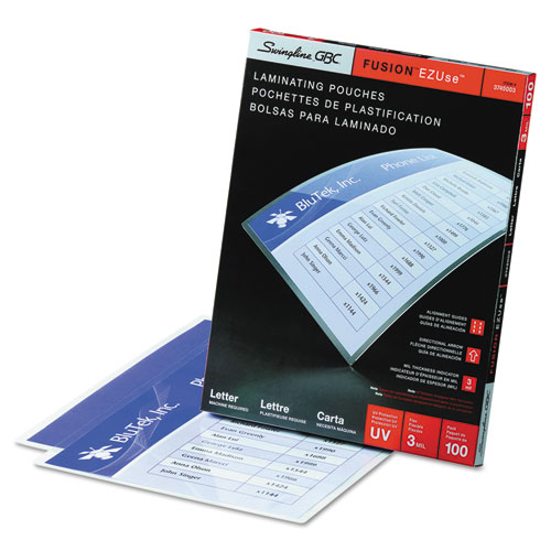 - Thermal lamination pouch includes visible ezuse™ features that magically disappear after lamination.
