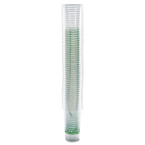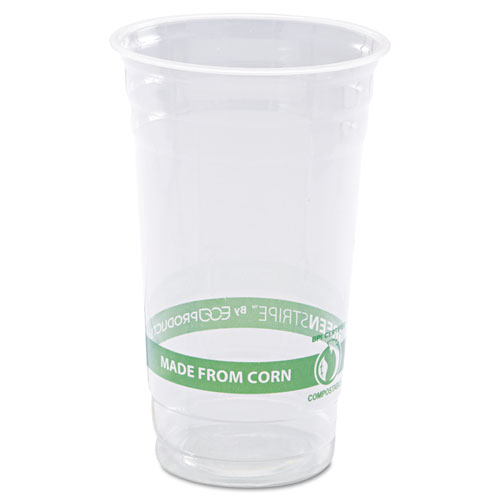 All-natural, compostable pla corn-based plastic cups. Greenstripe⢠printing informs customers of your preference for sustainable resources. Taper-down design with top ridges helps improve grip, minimizing the potential for dropped beverages and attendant spills.