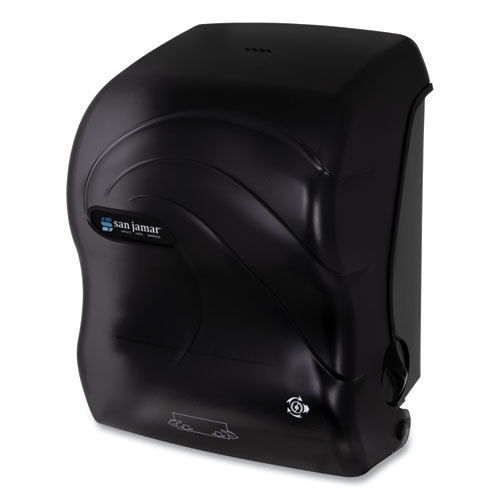 - Towels dispensers type: roll towel dispenser; capacity (text): one 8" roll; material(s): plastic; color(s): black pearl.