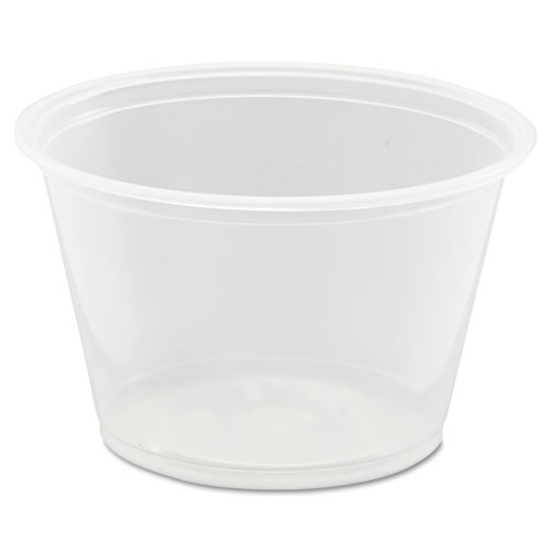 - Cup type: portion; capacity (volume): 4 oz; material(s): polypropylene; color(s): clear.