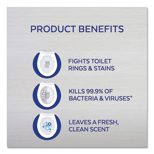 Kills 99.9% of bacteria and viruses when used as directed. Angled neck applicator targets hard-to-reach areas, including under the rim. Thick 9.5% hydrochloric acid formula coats above and below the waterline.