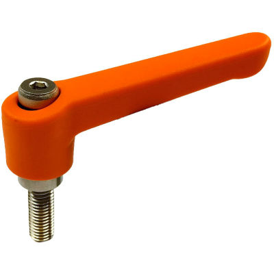 J.W. Winco 5t40s34o nylon plastic adj lever w/ stainless steel components 5/16-18 x 1.57" stud adjustable hand levers are ideal whenever parts have to be clamped in a confined space or in a particular lever position. The insert is connected to the lever via serrations which can easily be disengaged.