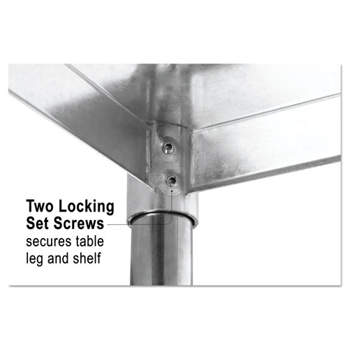 - 18-gauge stainless steel top; galvanized steel base and shelf