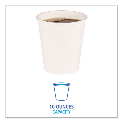 - Cup type: hot/cold; capacity (volume): 10 oz; material(s): polycoated paper; color(s): white.