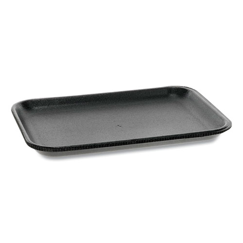 - Food container type: supermarket tray; material(s): polystyrene; color(s): black; width: 8.2".